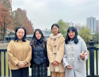 王晨熙(左二)、孙一滋(右二)、袁春琳(右一)与指导老师姚夏晶(左一)